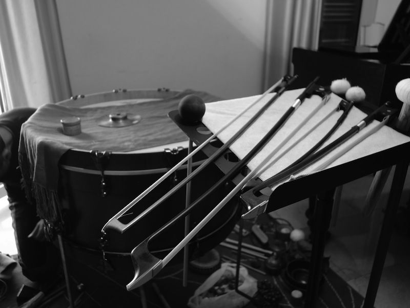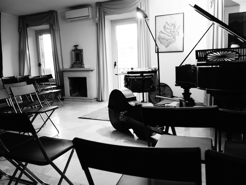 Le 21 avril 2015, Michele Rabbia avait organisé à Rome une rencontre sous forme de concert avec deux de ses partenaires privilégiés en Italie, le contrebassiste Daniele Roccato et le pianiste Ciro Longobardi. Cette rencontre ayant lieu à la Casa Museo de Giacinto Scelsi, dans le salon même où le compositeur travaillait, elle entremêla des pièces du compositeur, jouées par Ciro et Daniele, et des improvisations, comme ce que Scelsi lui-même pratiquait. Il est sans doute des lieux moins propices à la musique, comme le montre la vidéo ci-dessous…